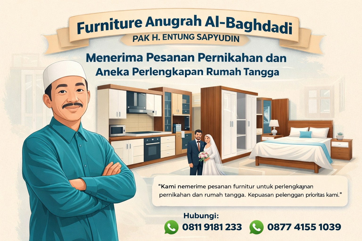 KARAWANG – Furniture Anugrah Al-Baghdadi terus menunjukkan eksistensinya sebagai penyedia berbagai kebutuhan furnitur berkualitas. Toko furnitur milik H. Entung Sapyudin ini melayani pemesanan khusus untuk keperluan pernikahan serta aneka perlengkapan rumah tangga, mulai dari kitchen set, lemari, interior rumah, tempat tidur, hingga berbagai furnitur lainnya.