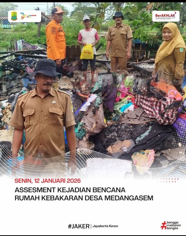 Karawang – Pemerintah Kecamatan Jayakerta bersama unsur terkait melakukan assessment kejadian kebakaran rumah warga di Desa Medangasem, Kecamatan Jayakerta, Kabupaten Karawang, pada Senin (12/1/2026).