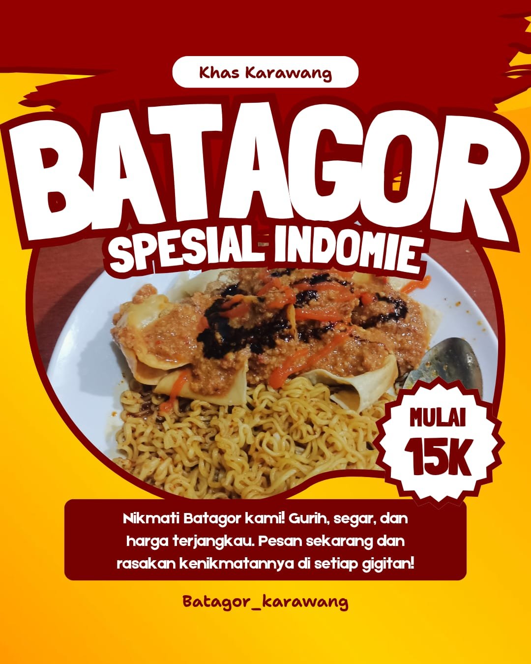 Yuk, jangan sampai ketinggalan! Langsung datang ke Jalan Krajan, Desa Jomin Timur, Kecamatan Kotabaru, Karawang, dan rasakan sendiri sensasi batagor Indomie yang lagi hits ini.