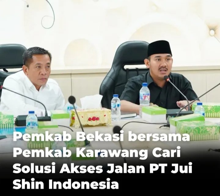 Bekasi | SUARAPURWASUKA.COM– Bupati Bekasi Ade Kuswara Kunang bersama Bupati Karawang Aep Syaepuloh menggelar rapat koordinasi membahas kondisi jalan operasional menuju PT Jui Shin Indonesia (Semen Garuda). Pertemuan berlangsung di Ruang Rapat Bupati Bekasi, Gedung Bupati Bekasi, Cikarang Pusat, Kamis (25/9/2025).