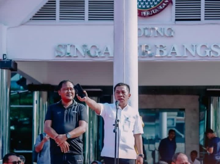 KARAWANG — Bupati Karawang, H. Aep Syaepuloh, S.E., memberikan apresiasi kepada seluruh Aparatur Sipil Negara (ASN) dan tim media sosial Organisasi Perangkat Daerah (OPD) atas kontribusi, kreativitas, serta kepedulian mereka terhadap kegiatan kemanusiaan dan pelayanan publik. Hal tersebut disampaikan dalam kegiatan senam pagi rutin di lingkungan Pemerintah Kabupaten (Pemkab) Karawang pada Jumat (12/12/2025).