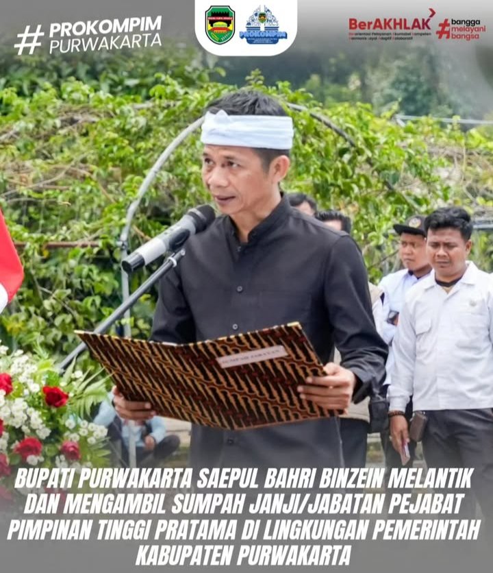 Purwakarta | SUARAPURWASUKA.COM– Bupati Purwakarta Saepul Bahri Binzein resmi melantik dan mengambil sumpah janji jabatan 10 Pejabat Pimpinan Tinggi Pratama (eselon II) di lingkungan Pemerintah Kabupaten (Pemkab) Purwakarta. Prosesi pelantikan berlangsung di Kebun Istimewa, Desa Pusakamulya, Kecamatan Kiarapedes, Selasa (23/9/2025).