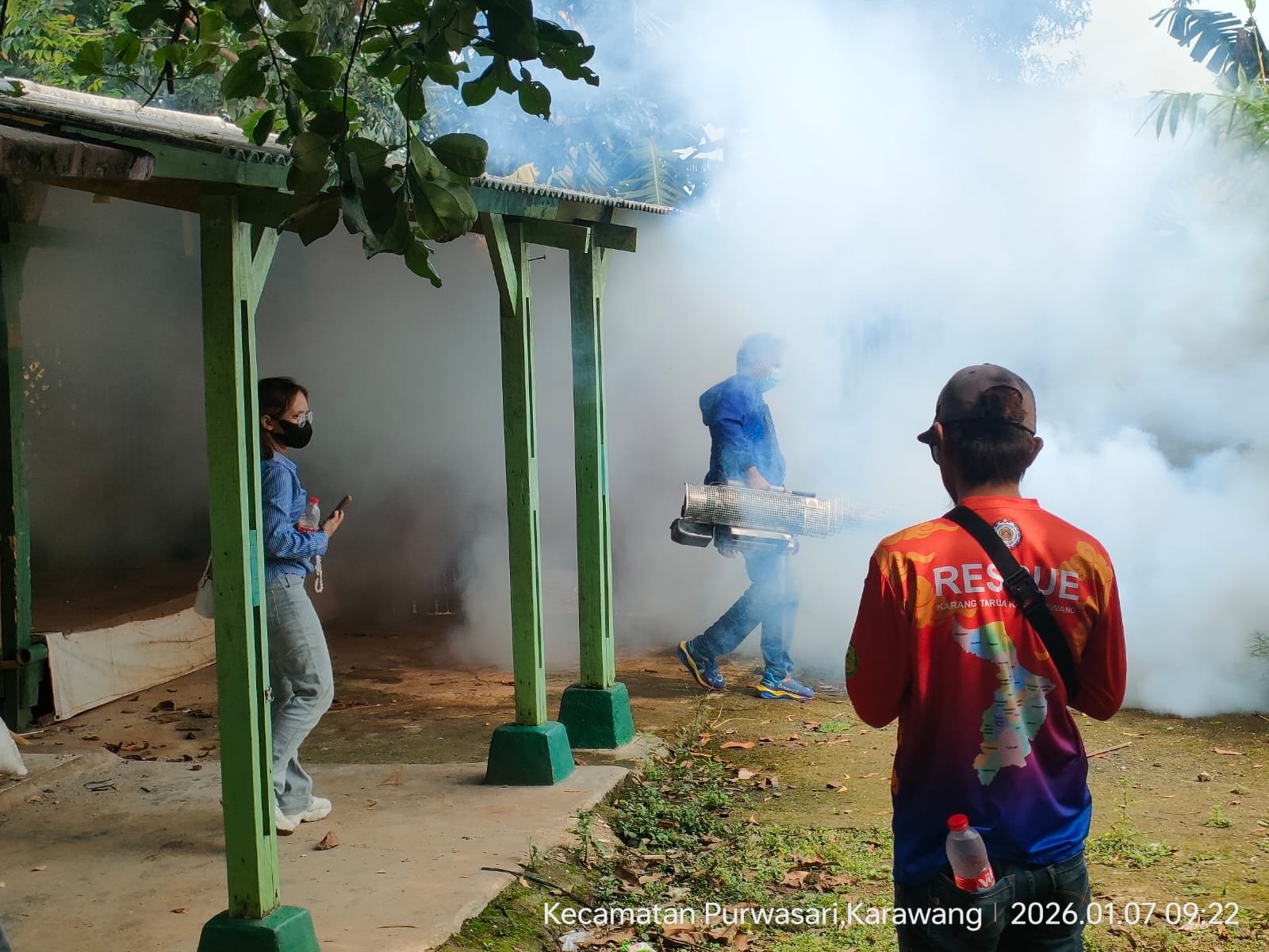 Karawang, – Ketua Unit Rescue Karang Taruna Kabupaten Karawang bersama Karang Taruna Desa Darawolong melaksanakan kegiatan fogging sebagai upaya pencegahan penyebaran penyakit Demam Berdarah Dengue (DBD). Kegiatan tersebut dilaksanakan di Dusun Krajan RT 001 RW 001 dan Dusun Babakan Karang Tengah, Desa Darawolong, Kecamatan Purwasari, Kabupaten Karawang, Rabu (07/01/2026).