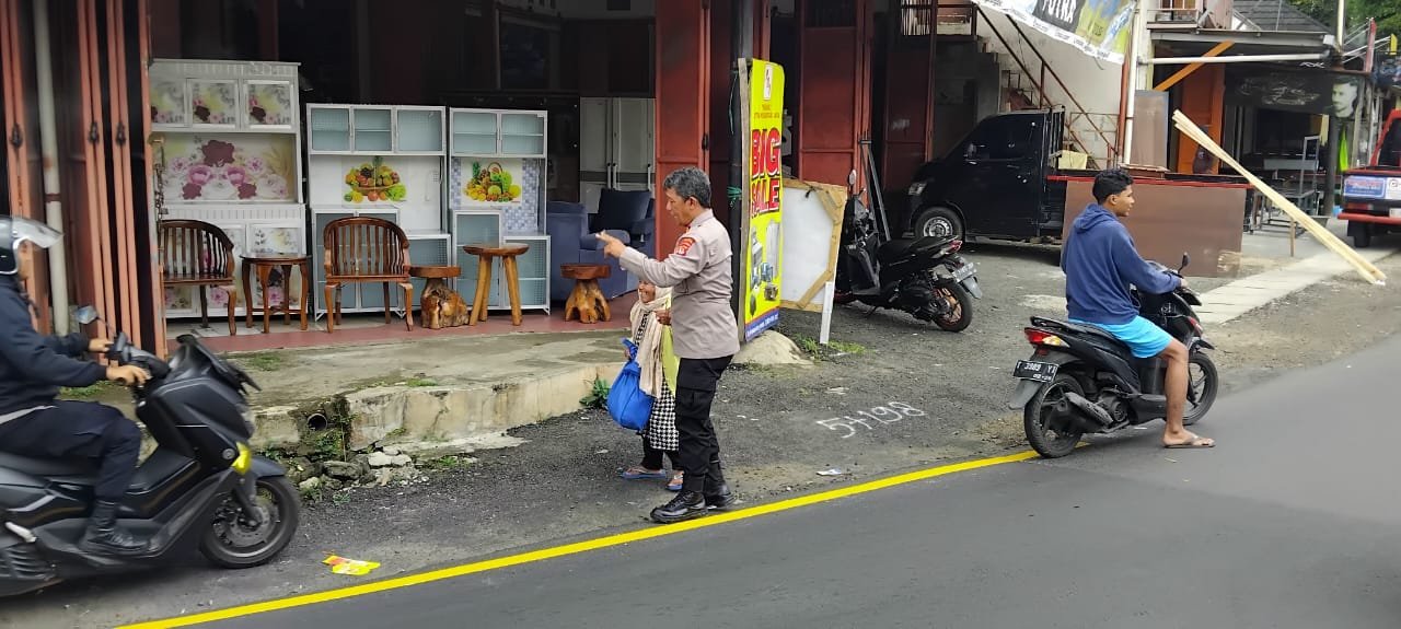 Nasib si nenek beruntung bisa bertemu dengan anggota Polisi yang sedang siaga menjaga pos pengamanan Nataru di simpang tokma Jalan Cagak Subang.