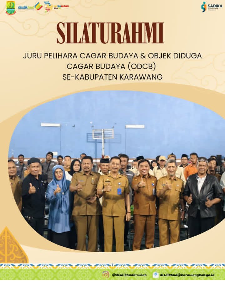Karawang – Dinas Pendidikan dan Kebudayaan (Disdikbud) Kabupaten Karawang menggelar kegiatan Silaturahmi Juru Pelihara Cagar Budaya dan Objek Diduga Cagar Budaya (ODCB) se-Kabupaten Karawang. Kegiatan tersebut dilaksanakan di GOR Disdikbud Kabupaten Karawang dan dihadiri para juru pelihara, perwakilan pemerintah desa, serta unsur terkait lainnya. Senin (12/01/2026).