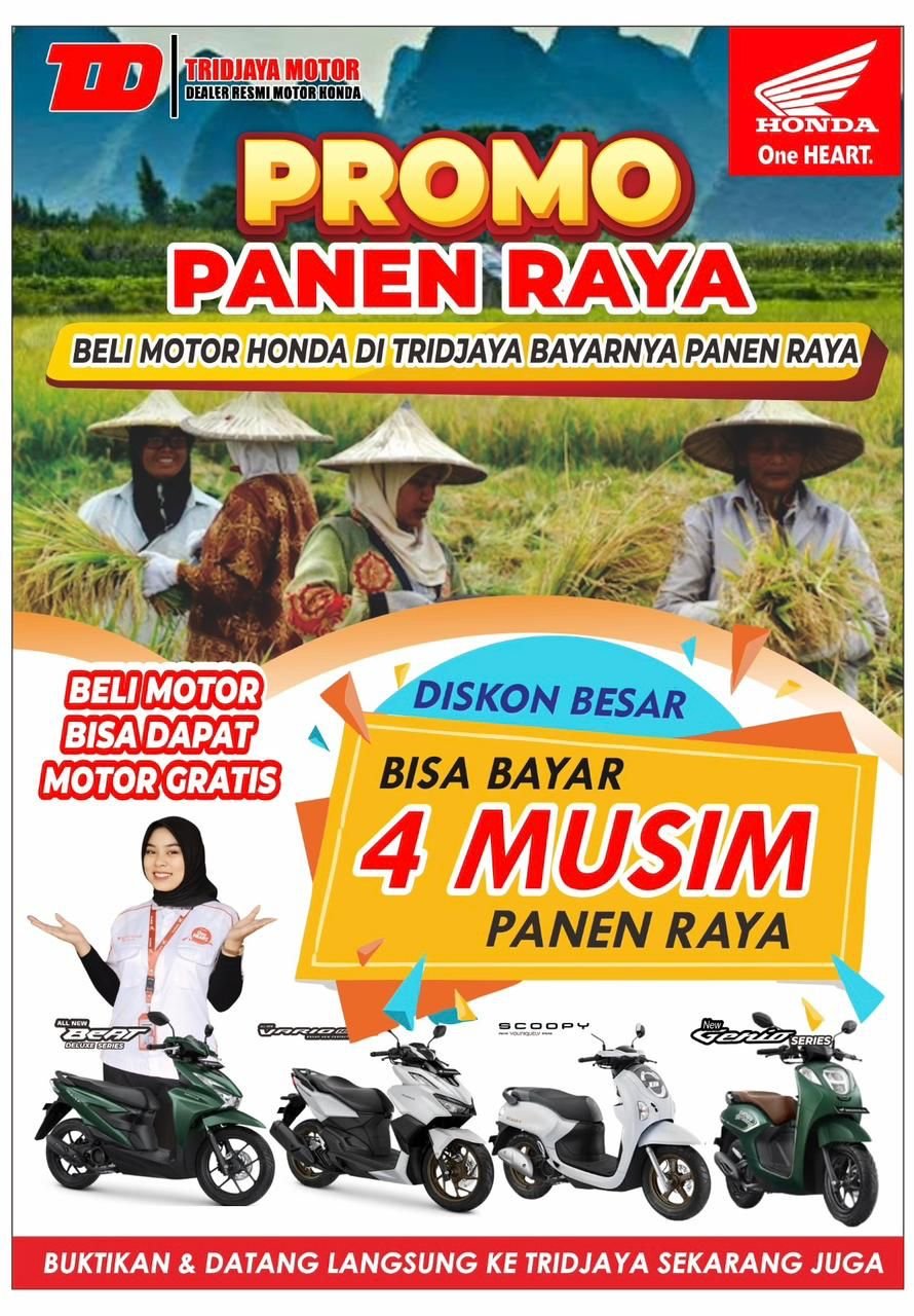 Bulan ini juga jadi momen istimewa karena hadirnya promo “Panen Raya”, di mana setiap pembelian motor Honda berkesempatan mendapatkan diskon spesial ala musim panen.