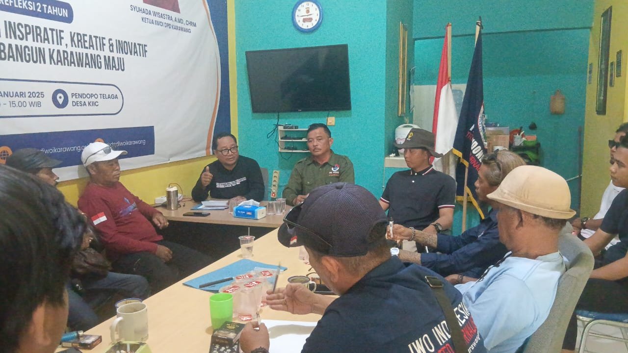 Ketua IWOI DPD Karawang, Syuhada Wisastra, memimpin langsung jalannya rapat yang dihadiri oleh jajaran pengurus inti dan para Ketua Korwil dari berbagai wilayah, mulai dari utara, selatan, kawasan perkotaan, hingga wilayah penyangga.