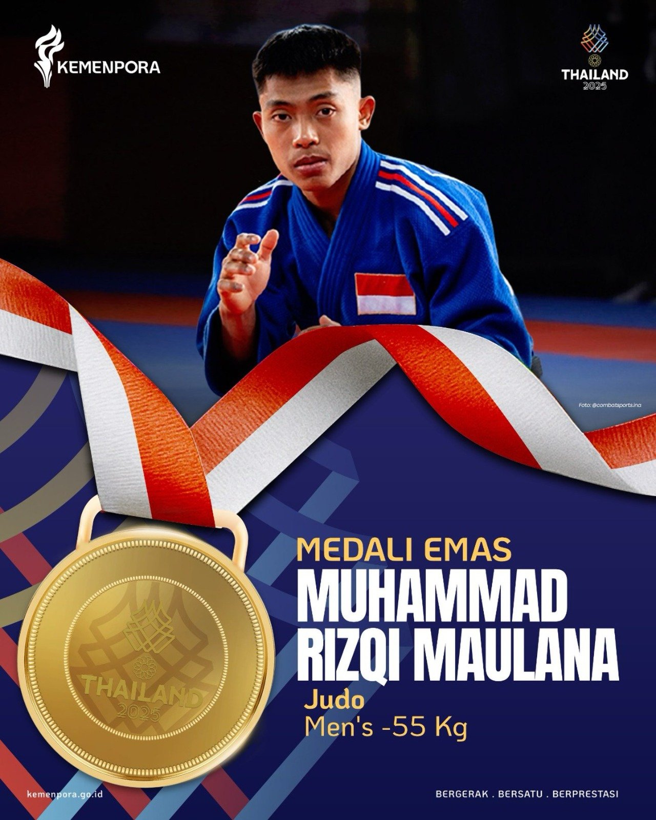 Judo asal Cibogo, Kecamatan Telukjambe Barat, Karawang itu memastikan podium tertinggi setelah menumbangkan atlet Vietnam pada partai final yang berlangsung sengit. Dengan teknik dan ketenangan yang matang, Rizqi mampu mengunci kemenangan sekaligus mengibarkan Merah Putih di arena pertandingan.