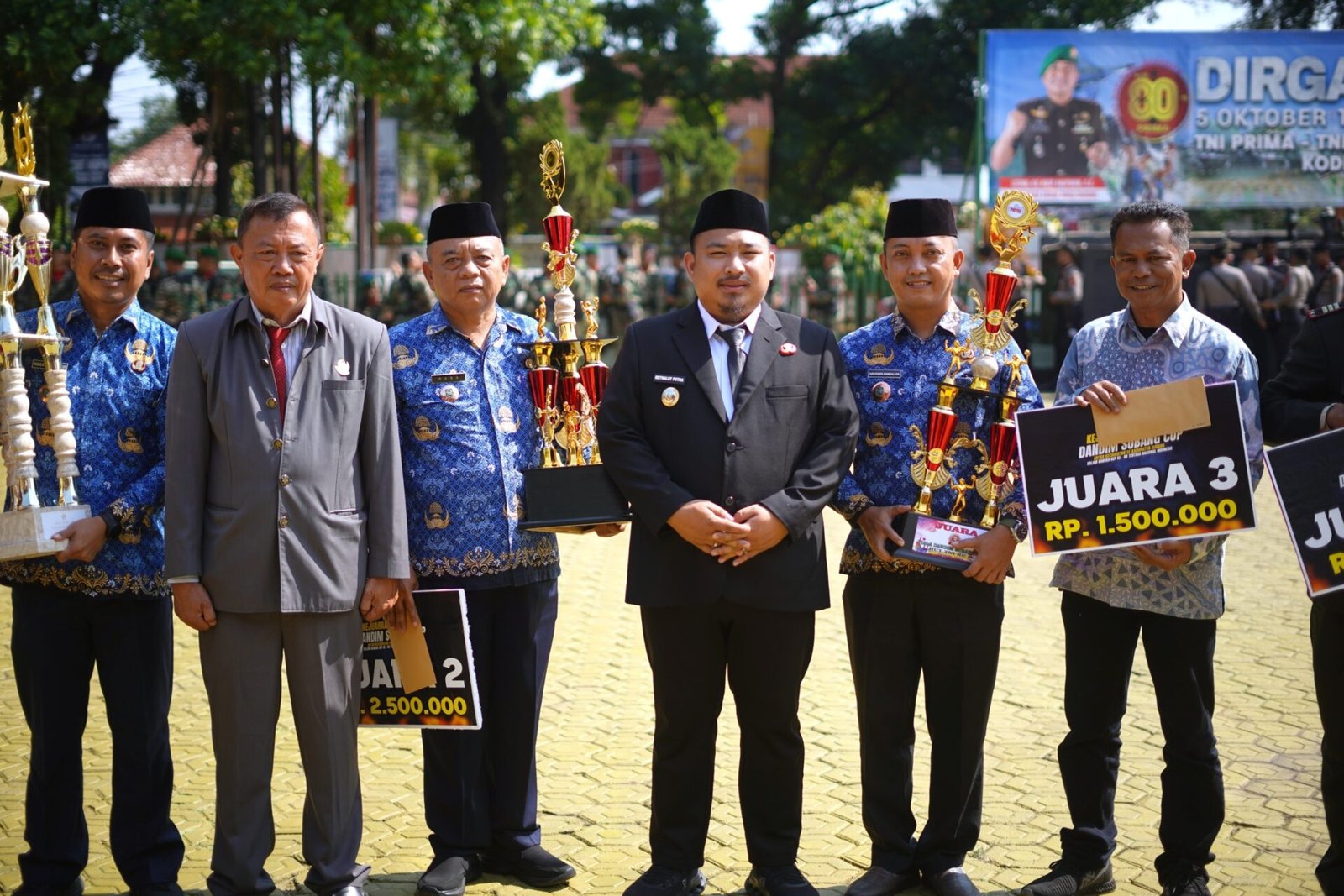 Usai pelaksanaan upacara, Bupati Subang bersama Sekretaris Daerah berkesempatan menyerahkan hadiah bagi para pemenang perlombaan HUT ke-80 TNI. Kegiatan kemudian dilanjutkan dengan peletakan batu pertama dan penandatanganan pembangunan lapangan tembak Makodim 0605 Subang sebagai simbol komitmen peningkatan sarana latihan TNI di daerah.