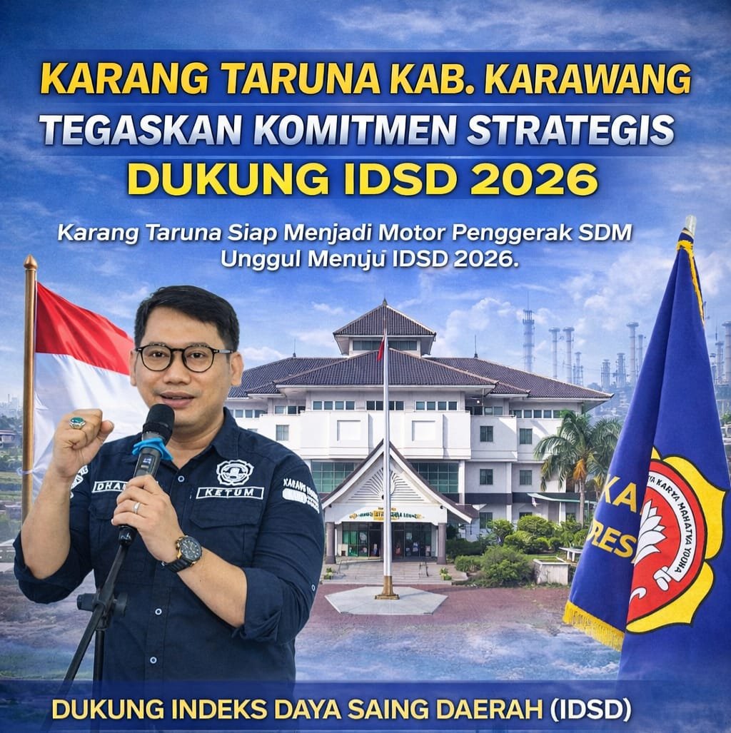 Karawang | SUARA PURWASUKA.COM– Menyikapi hasil Indeks Daya Saing Daerah (IDSD) 2025 yang dirilis oleh Badan Riset dan Inovasi Nasional, yang menempatkan Kabupaten Karawang pada peringkat 15 dari 18 kabupaten di Jawa Barat dengan skor 3,62, Karang Taruna Kabupaten Karawang menyatakan komitmen strategis untuk bersinergi dengan Pemerintah Daerah dalam meningkatkan daya saing daerah pada tahun 2026.