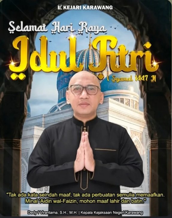 KARAWANG | SUARAPURWASUKA.COM– Kepala Kejaksaan Negeri (Kejari) Karawang, Dedy I. Virantama, S.H., M.H., menyampaikan ucapan selamat Hari Raya Idulfitri 1 Syawal 1447 Hijriah kepada seluruh masyarakat Kabupaten Karawang, jajaran kejaksaan, serta para pemangku kepentingan.