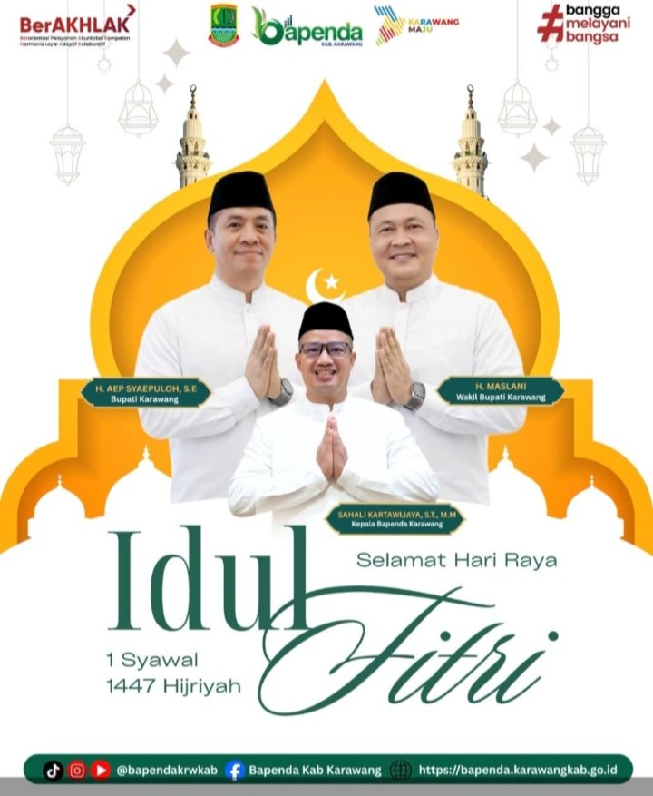 Ucapan tersebut disampaikan bersama Bupati Karawang H. Aep Syaepuloh, S.E., dan Wakil Bupati H. Maslani sebagai bentuk kebersamaan pemerintah daerah dalam menyambut hari kemenangan umat Islam.