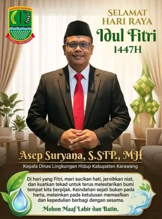 KARAWANG | SUARAPURWASUKA.COM– Kepala Dinas Lingkungan Hidup (DLH) Kabupaten Karawang, Asep Suryana, menyampaikan ucapan selamat Hari Raya Idul Fitri 1447 Hijriah kepada seluruh masyarakat Kabupaten Karawang. Melalui pesan yang disampaikan dalam ucapan resmi, ia juga mengajak masyarakat untuk menjadikan momentum Idul Fitri sebagai waktu memperkuat kepedulian terhadap lingkungan.