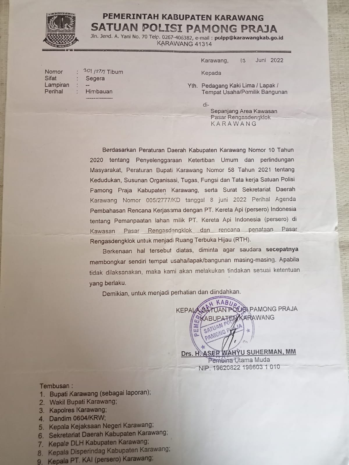 Kami berharap pemerintah daerah, melalui instansi terkait seperti Satuan Polisi Pamong Praja (Satpol PP) Kabupaten Karawang, dapat memberikan penjelasan resmi sekaligus melakukan penertiban secara transparan. Selain itu, warga meminta agar persoalan ini ditindaklanjuti secara hukum apabila ditemukan unsur pelanggaran.