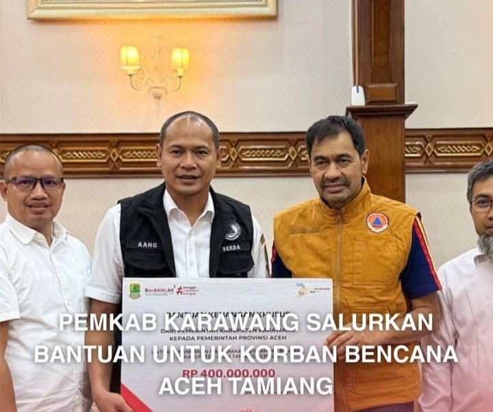 KARAWANG — Pemerintah Kabupaten Karawang menunjukkan komitmen kuat dalam solidaritas kemanusiaan dengan menyalurkan bantuan senilai Rp400 juta kepada Pemerintah Provinsi Aceh. Bantuan tersebut dialokasikan khusus untuk mendukung penanganan serta pemulihan masyarakat terdampak bencana alam di Kabupaten Aceh Tamiang.