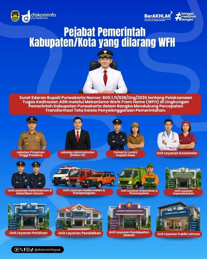 Melalui surat edaran ini, Pemkab Purwakarta juga mengimbau seluruh ASN untuk tetap bekerja secara profesional serta menjaga standar pelayanan prima di tengah dinamika sistem kerja yang terus berkembang.