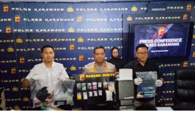 Kapolres Karawang didampingi Kasat Narkoba memaparkan capaian kinerja jajaran dalam menekan peredaran gelap narkoba di wilayah hukum Karawang. Menurutnya, keberhasilan pengungkapan puluhan kasus tersebut menjadi bukti komitmen kepolisian dalam pemberantasan narkotika secara berkelanjutan.