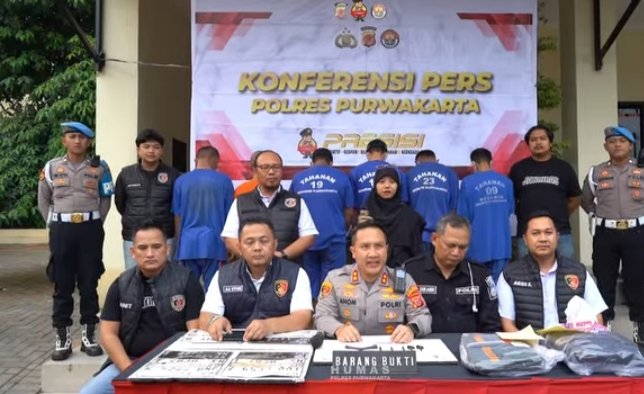 Dalam konferensi pers yang dipimpin Kapolres Purwakarta, AKBP I Dewa Putu Gede Anom Danuyasa, S.H., S.I.K., M.H., pihak kepolisian mengamankan enam orang tersangka. Sementara itu, tiga orang lainnya masih masuk dalam daftar pencarian orang (DPO).