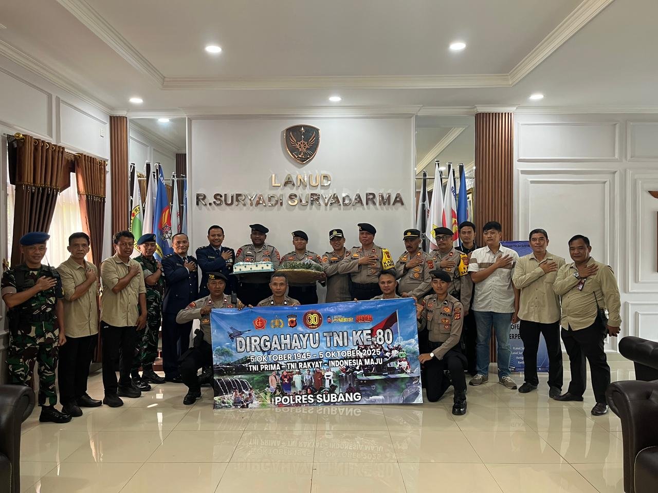 Sebagai wujud sinergi dan penghormatan, Polres Subang juga menyerahkan kue dan tumpeng peringatan HUT TNI kepada jajaran TNI, di antaranya Kodim 0605/Subang, Yonif 312/Kala Hitam, Subdenpom III/3-2, serta Lanud R. Suryadi Suryadarma.