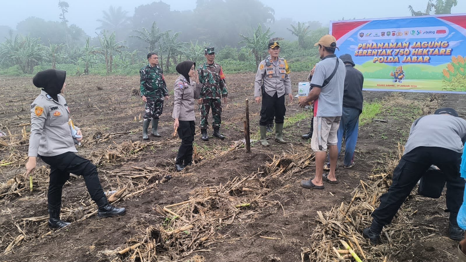Kegiatan ini dipimpin langsung oleh Kapolsek Jalan Cagak sebagai bentuk komitmen Polri dalam mendukung swasembada pangan khusunya jagung hibrida serta memperkuat sinergitas lintas sektor di bidang pertanian.