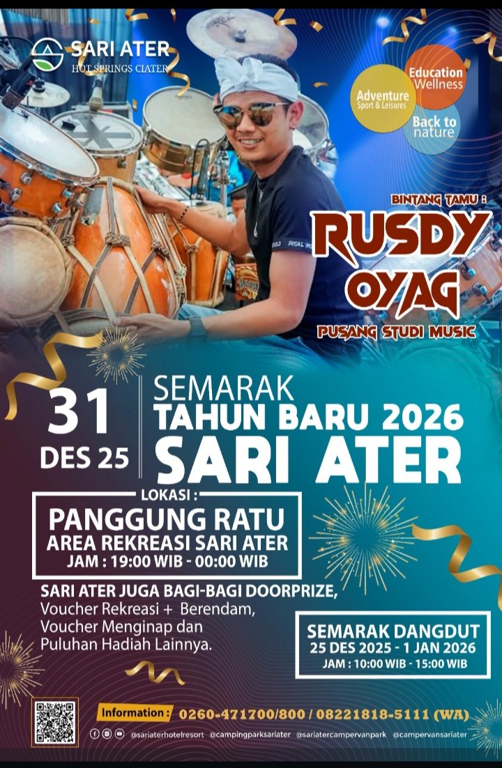 Dengan perpaduan hiburan, suasana alam pegunungan, serta fasilitas pemandian air panas alami, Semarak Tahun Baru 2026 Sari Ater diharapkan menjadi salah satu destinasi favorit masyarakat dalam merayakan pergantian tahun.