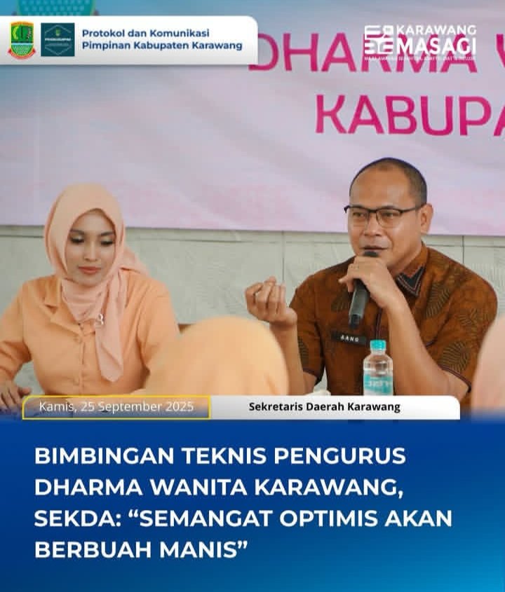 Dalam sambutannya, Sekda Karawang memberikan apresiasi kepada organisasi Dharma Wanita. Ia menekankan pentingnya semangat optimis yang menurutnya akan berbuah manis bagi organisasi maupun masyarakat.