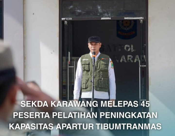 KARAWANG – Sekretaris Daerah (Sekda) Kabupaten Karawang, H. Asep Aang Rahmatullah, S.STP., MP, secara resmi melepas 45 peserta Pelatihan Peningkatan Kapasitas Aparatur Ketentraman dan Ketertiban Umum serta Penanganan Massa (Tibumtranmas). Pelepasan peserta berlangsung di Kantor Satpol PP Karawang pada Rabu (26/11/2025).
