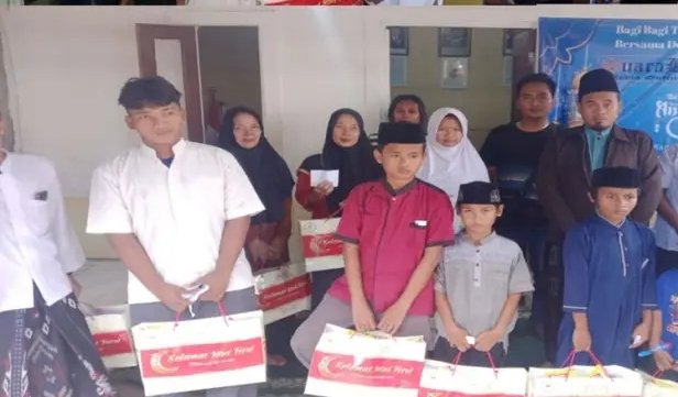 Sebelum memberikan santunan pihaknya menggelar Doa’ bersama, untuk memanjatkan puji dan syukur kehadirat Allah SWT.